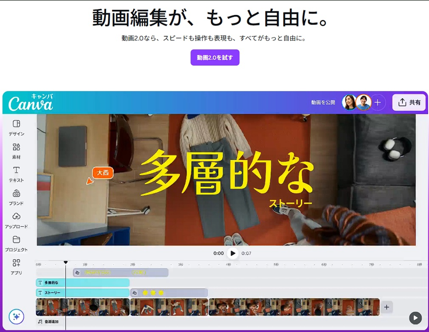 ・動画2.0:直感的なタイムラインで同期・トリミング・レイヤー操作を高速化。AIの自動編集補助も入る。